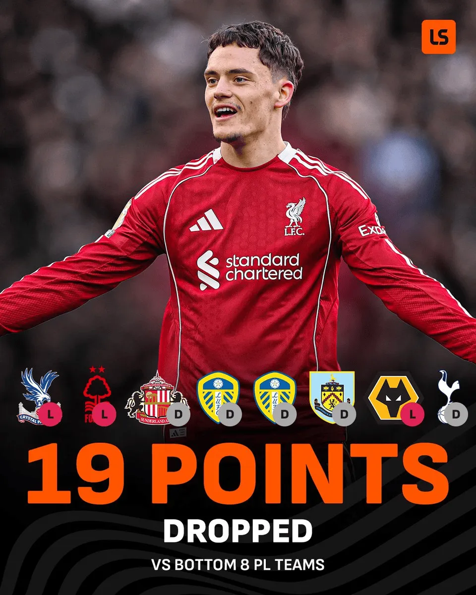 旺财28APP-扶贫!利物浦本赛季面对目前积分倒数前八球队累计丢达19分