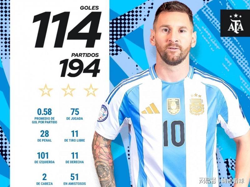 赛后,梅西表示,以这样的方式结束本土最后一场正式比赛,是自己的梦想。阿根廷足协也晒出梅西的数据,194次出场,打进114个进球,场均接近0.6球,其中有28个是点球,51球在友谊赛中打进的,另外还包括13个世界杯正赛进球。